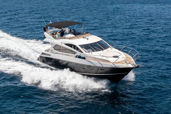 The Midnight Summer Dream (Sunseeker manhattan 63) has a certified capacity of 12+2 guests. At 21 metres in length, it offers ample space for a comfortable group experience.
